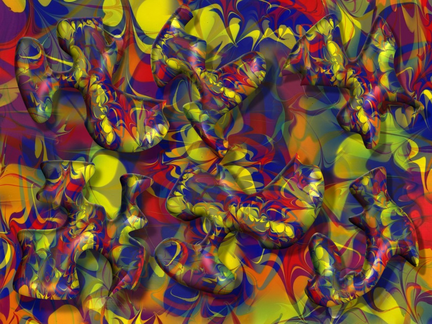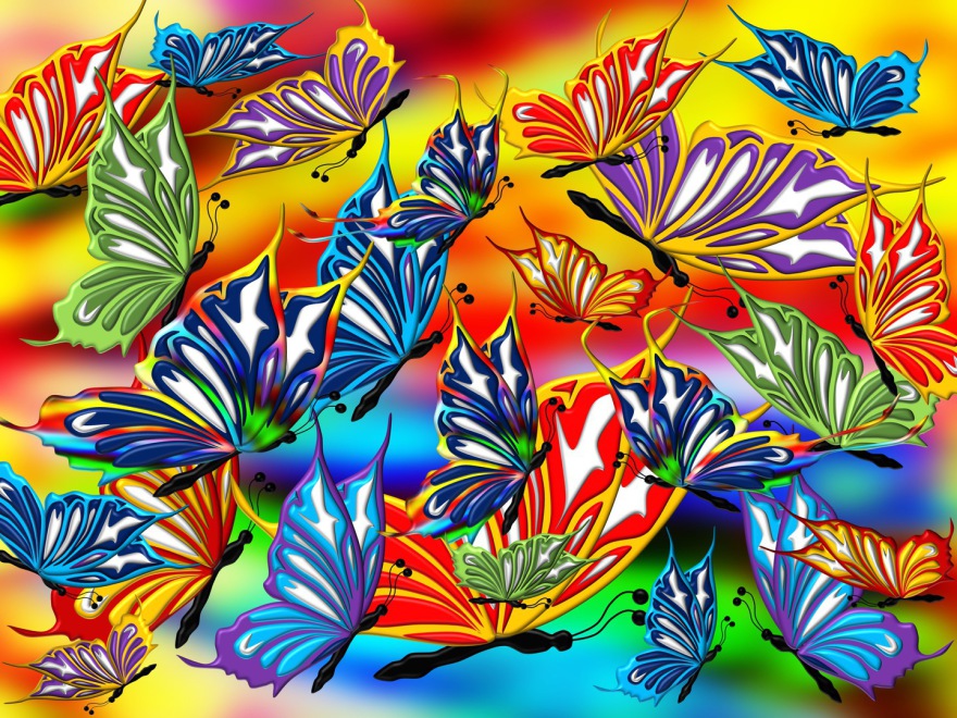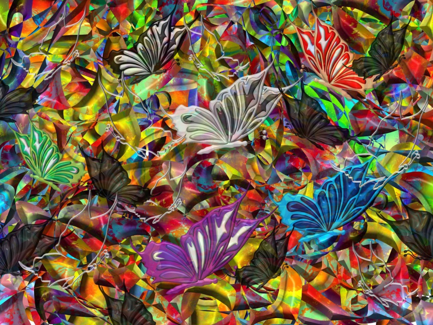 many butterflies; maybe a draft for a challenging puzzle (combined painting technique; 2025-09-21)