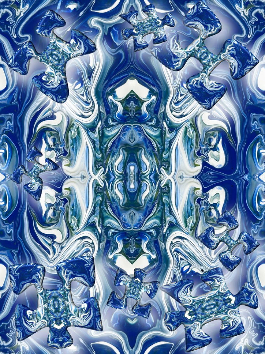 free fall of puzzle pieces (combined painting technique; 2025-10-24)