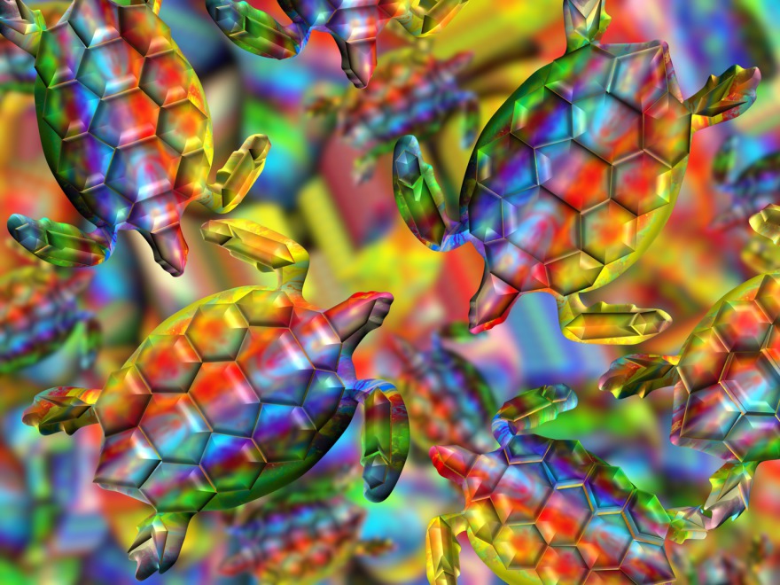 simply playing with a lot of colors, light (and objects) in 4 spaces; version VIII (painted with PowerPoint; 2024-06-28)