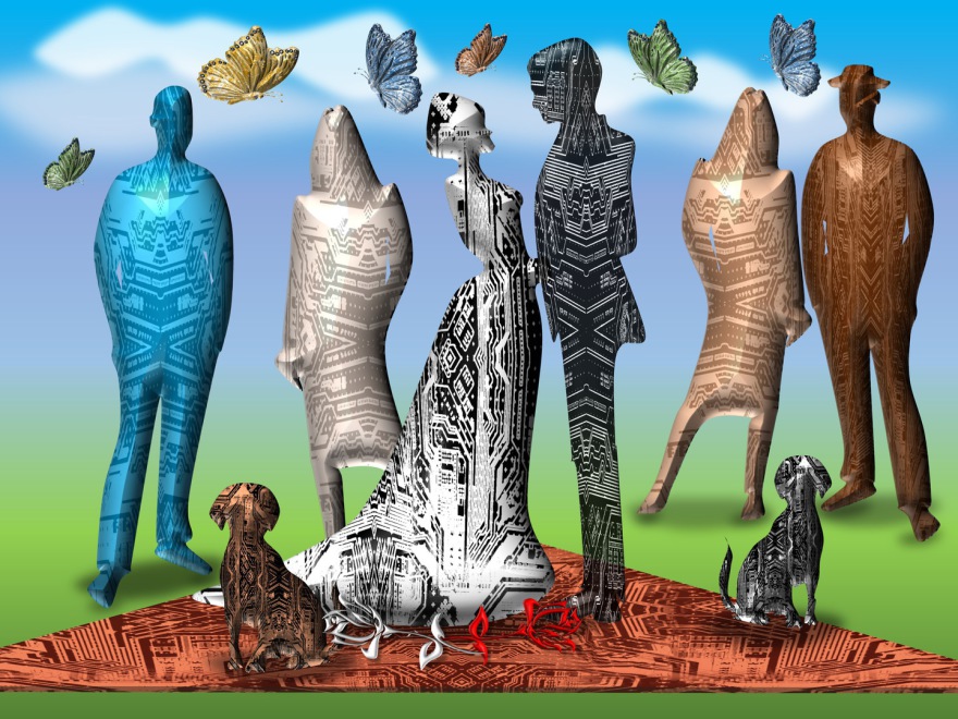 maybe friendly touches by AI objects (combined painting technique; 2025-07-15)