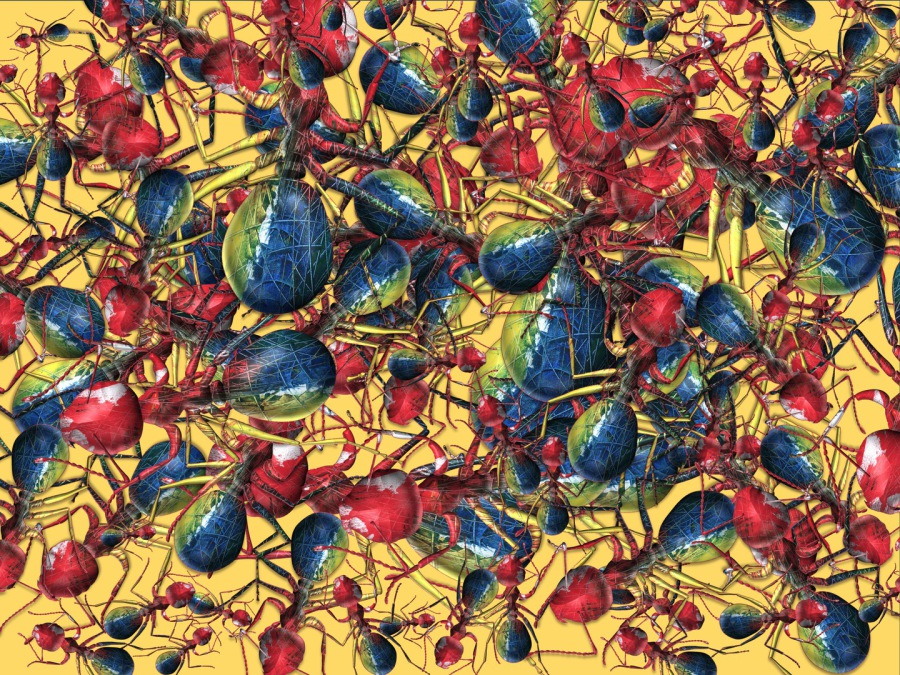 a lot of ants are painting; (combined painting technique; (not finished; current stage 2026-03-21); (some ants are maybe real artists!)