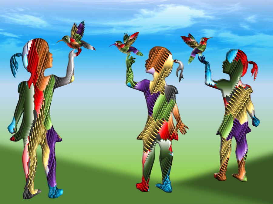 birds and kids (both need protection!); (combined painting technique; 2026-04-02)